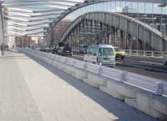 車両の進入制御や車線変更、風荷重による転倒防止などの仮設用置き基礎用として緊急時に対応出来る連続基礎ブロックです。
